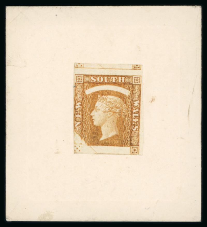 1870 April-May colour trials for the 1/2d bantam stamps, a single impression as struck from the small plate of six incomplete impressions of the New South Wales "Diadem" issues on white wove paper in orange ochre.