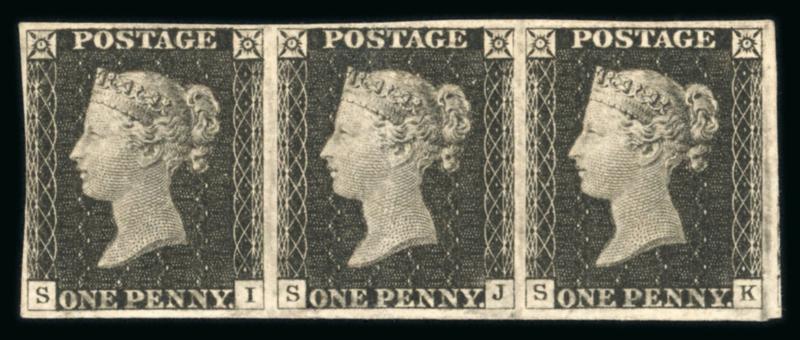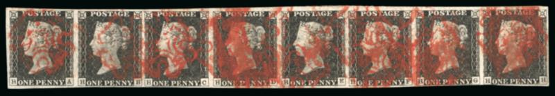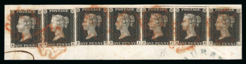 1840 1d black, a magnificent used "set" of the 12 plates from 1a -11, each stamp a carefully selected marginal inscription example with good margins on other sides, all except three cancelled by red Maltese crosses, only AD with small repair at right, a stunning set which would be incredibly difficu