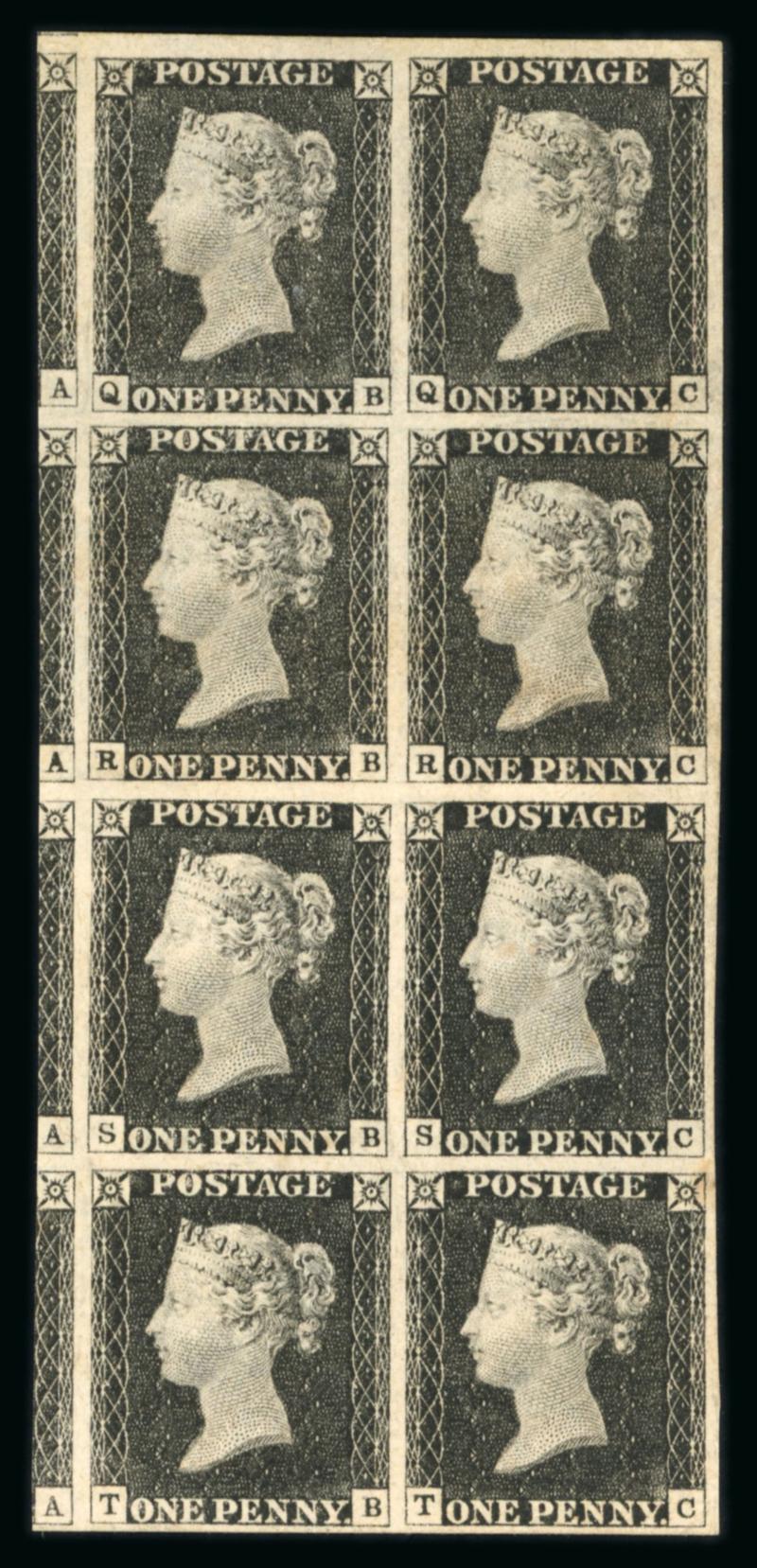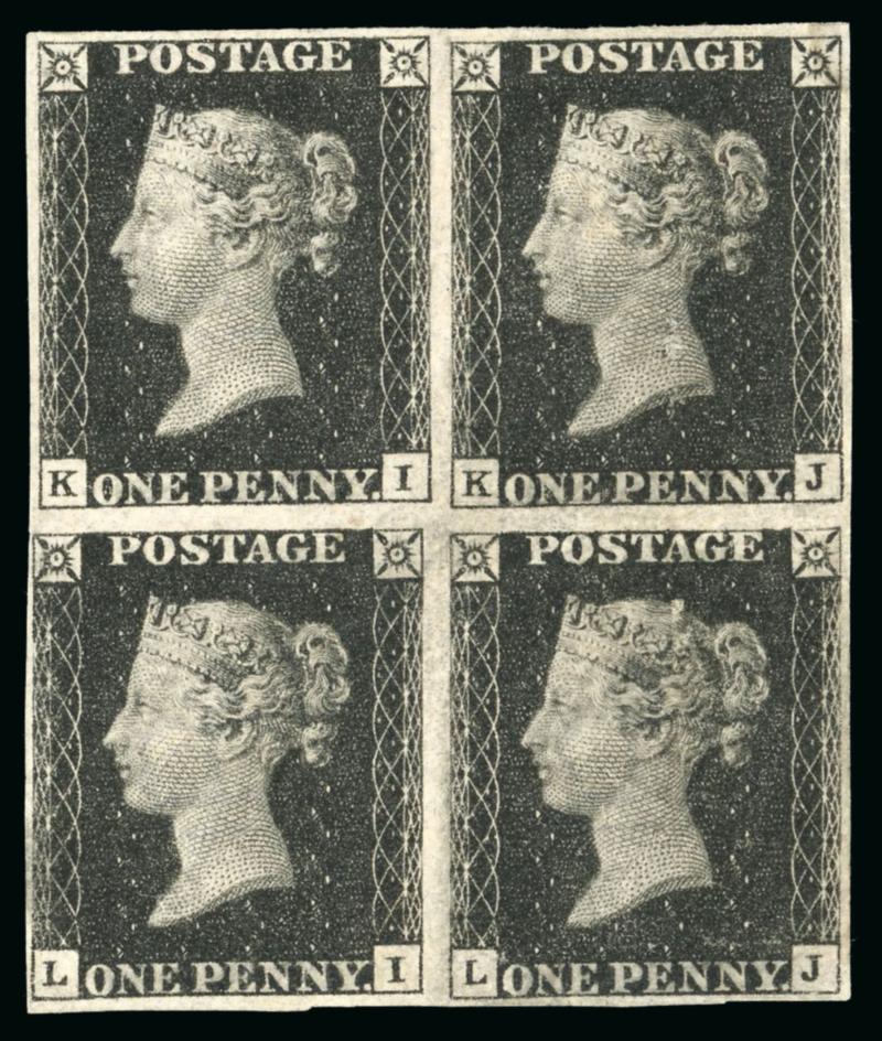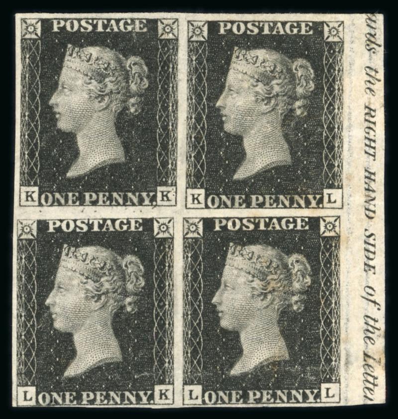 1840 1d black pl.1b BL with 4 large, even margins, crisp strike of red MC, a magnificent example!