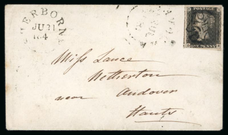 1840 1d black pl.1b AD with 4 large, even margins and neat strike of black MC, a fine and most attractive example.