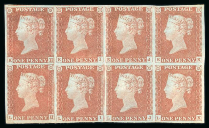 1841 1d red-brown pl.69 KH/LK in mint block of eight, good to large margins, central vertical crease, otherwise very fine and fresh multiple.