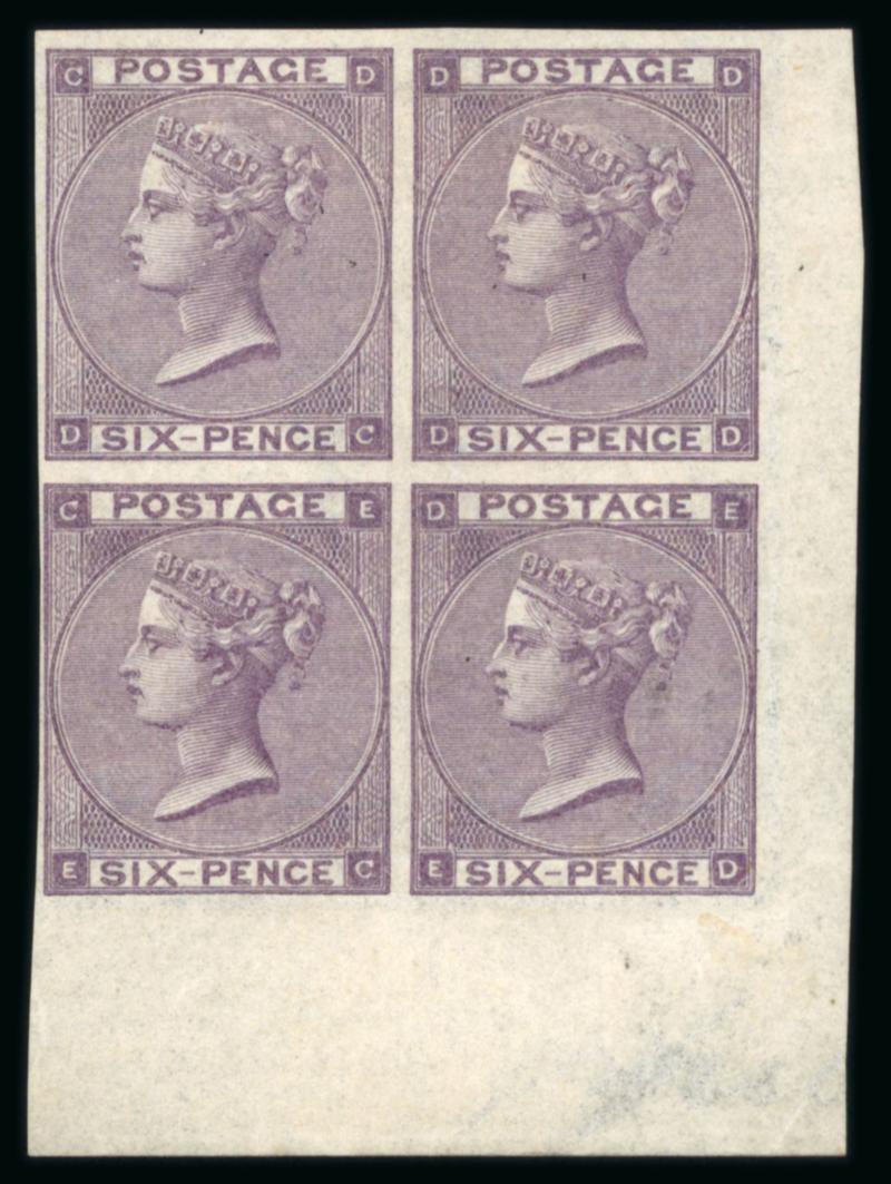 1862-64 6d. lilac block of four from the lower right of the pane, variety Imperforate and Watermark inverted; unused with part OG, fine and scarce. Ex Maximus.