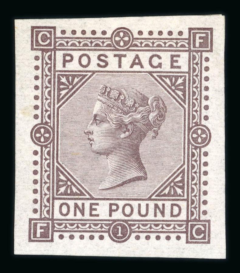 1867-83 £1 brown-lilac FC imprimatur, large margins all around with fresh deep colour, mint o.g., a superb example of this high value rarity; ex Beaumont (S.G. £45'000).