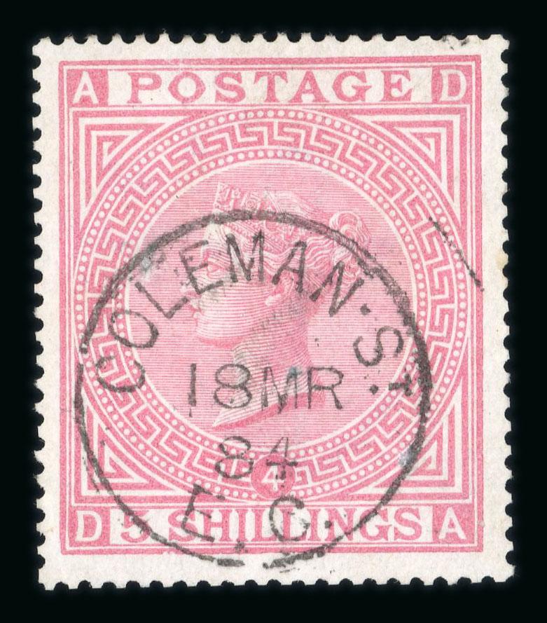 167-83 wmk Anchor 5s rose pl.4 used with superb strike of London Coleman St. 18 MR 84 cds, excellent colour, very fine and fresh (S.G. £3'500)