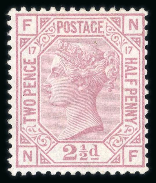 1873-80 2 1/2d rosy mauve pl.17 mint n.h., in pristine condition with superb colour and gum, a very scarce plate (S.G. £1'700 for hinged).