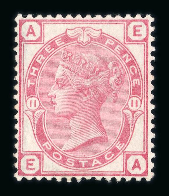 1873-80 Spray 3d rose pl 11 EA, pl 17 AC and pl 20 wing margin GH, each a fine mint example (GH small paper adhesion on reverse of wing margin). (S.G. £1'800).