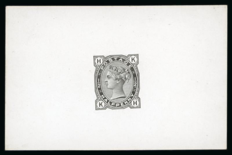 1880 Tender 1/2d. essay 1/2d. head B, frame 1 from the 1d. tender though altered for the 1/2d. denominations in black on glazed card (66 x 92mm), this combination not listed.