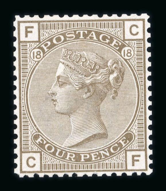 1880 4d. grey-brown, CF, Pl.18, line perf. 14 ex "Before and After the Committee" Album, removed from the sunken frame hence without gum (as they all are); superb fresh colour; rare.