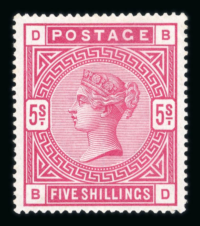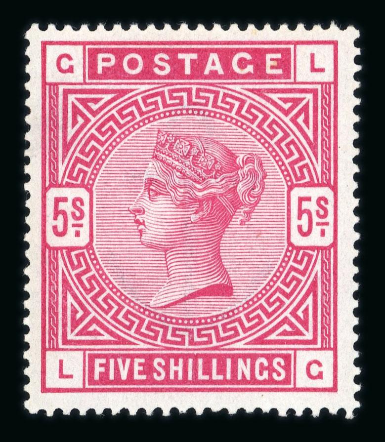 1883-84 5/- crimson LG mint n.h., a lovely, fresh example. (S.G. £975 as mounted).