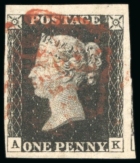 1840, 1d black pl.1b FK, four large even margins, strong colour, crisp impression, cancelled by a neat Maltese cross in red, give an extremely fine appearance to what is a very attractive example from this early plate; such fine examples command a premium and are much more difficult to find than the