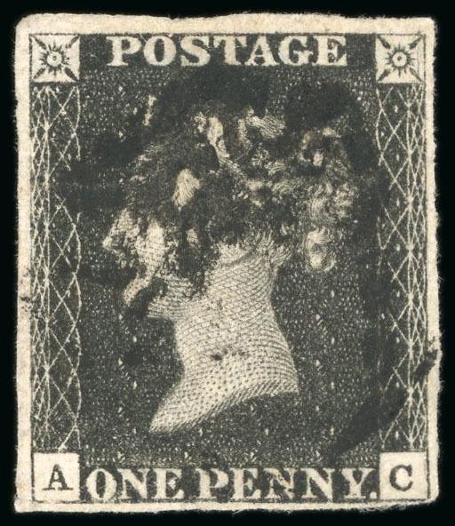 1840, 1d black pl.1b AC with good margins, large part margin at top and fine to good margins elsewhere and inverted watermark, indistinct brownish MC, attractive and scarce. (S.G. £2'000).