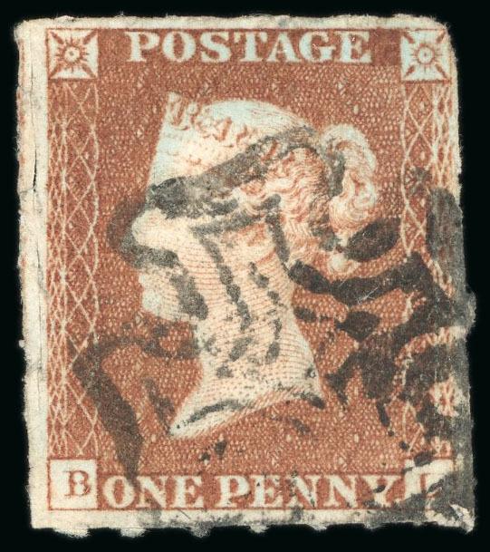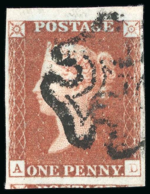 1840, 1d red pl.1c AJ, state 3, very close to large margins, bold black MC, very fine (S.G. Spec AS8, £650).