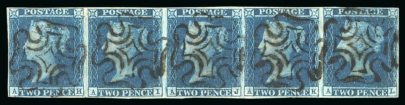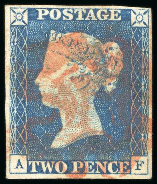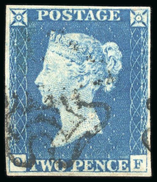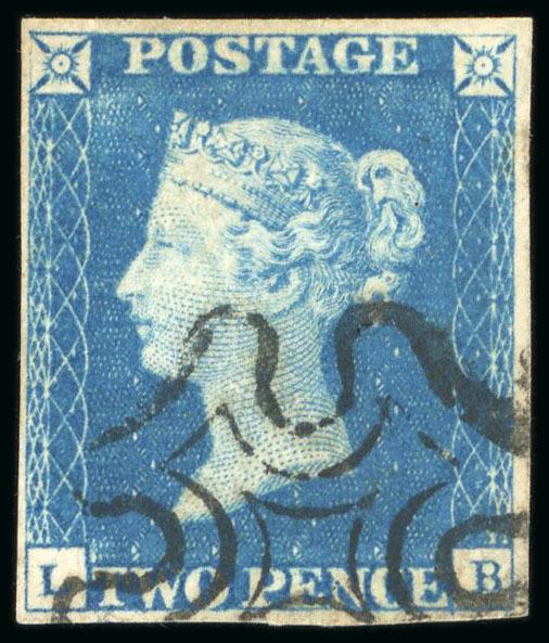 1840 2d blue pl.2 AK with close to very good margins, neat black MC, a fine example (S.G. £1'000).