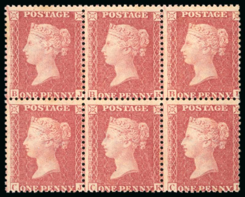 1861, 1d rose red pl.50 BJ-CL block of six, very fine mint n.h., scarce.