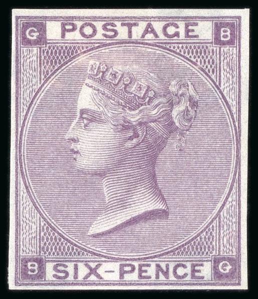 1862-64 Small Uncoloured Corner Letters. 1862 6d lilac pl.3 BG imperforate imprimatur, mint o.g., very scarce being one of only 25 taken from the sheet.