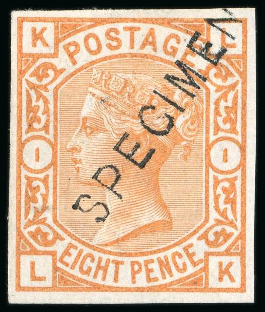 1876, 8d orange LK colour trial, imperforate with large part o.g. overprinted "SPECIMEN" type 11, very fine and fresh well centred.