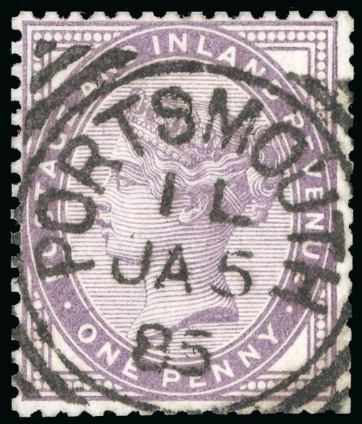 1881 1d lilac die II (16 dots) with experimental Portsmouth squared circle trial cancellation (Ja. 5.1885), produced for the 1884 Stamp Committee, very fine and rare. See S.G. Specialised Vol 1 Catalogue p.345.