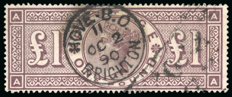1884 Crowns £1 brown-lilac, used with clear crisp central HOVE B.O. / OC.2.90 cds, a few short perfs., very fine (S.G. £3'000).
