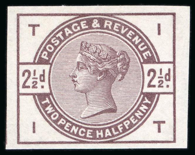 1873-80 Large Coloured Corner Letters, Wmk Small Anchor & Orbs. 1873-80, 2 1/2d rosy mauve pl.4 imperf. imprimatur, mint h.r., good margins, very fine, one of only 22 possible examples of which many are in institutional collections.