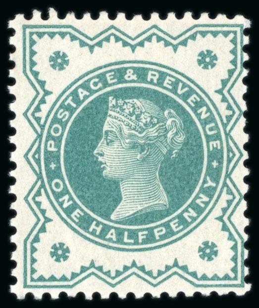 1900 Jubilee 1/2d colour trial in blue-green (issued colour) on unwatermarked paper, mint o.g., light crease at lower right, fine appearance and scarce (S.G. from £2'750).