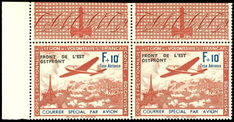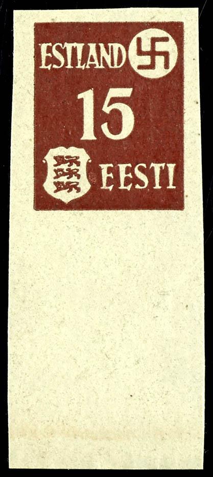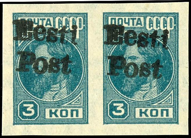 6 levs on 15 Stot postal stamp with overprint in type II, overprint flaw III "missing 1 in 1944", vertical pair with normal stamp, mint never hinged, very fine, expertized Krischke and photo expertize Robert Brunel BPP "the condition is perfect. ", Michel 143.- plus (3/3III) (page)