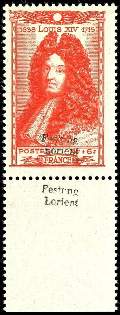 15 levs on 4 levs postal stamp with overprint in type I, overprint flaw IV "first 4 in 1944 open", upper margin copy, mint never hinged, very fine, unsigned, photo expertize Robert Brunel VP "the condition is perfect. ", Michel 400.- (6IV) (page)