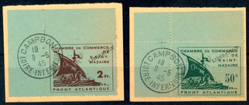 50 H. and 1 Kc. "100. day of death Machs" each with hand stamp overprint "we are free! plus swastika", neat cancelled with special cancel "Liberec 1 German Reichspost eighth of October 1938 Heil Hitler! " on pieces, issued only 50 sets, photo expertize Robert Brunel VP (2017) "the condition is perfe