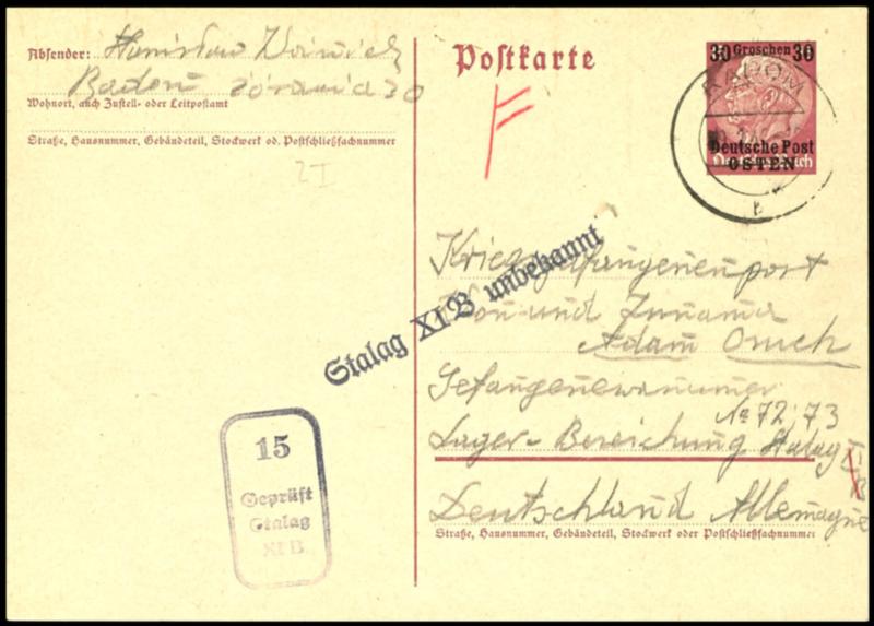 1 levs on 10 Stot postal stamp with overprint in type II, overprint flaw III "missing 1 in 1944", mint never hinged, very fine, expertized Krischke BPP and photo expertize Uwe Kleymann BPP "the condition is perfect. ", Michel 130.- (1III) (page)