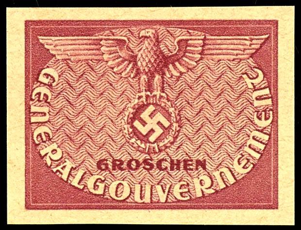 30 H. falcon, hand stamp overprint "we are free! plus swastika", unused with original gum and hinge trace, small gum crease, expertized Mahr BPP, Michel 700.- (48) 30 H. Falke, Handstempel-Aufdruck "Wir sind frei! + Hakenkreuz", ungebraucht mit Originalgummierung und Falzspur, kleiner Gummiknitte