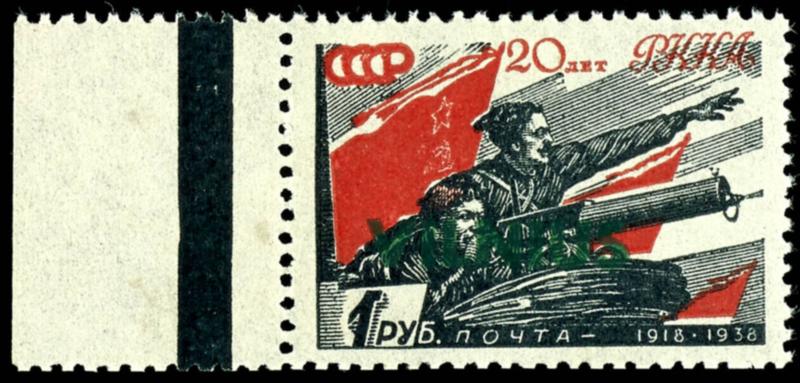 6 levs postal stamp with overprint in type II, overprint variety "overprint Gold on dark rose red", upper margin copy, mint never hinged, very fine, unsigned, photo expertize Robert Brunel VP "the condition is perfect. ", Michel 250.- (3FII) (page)