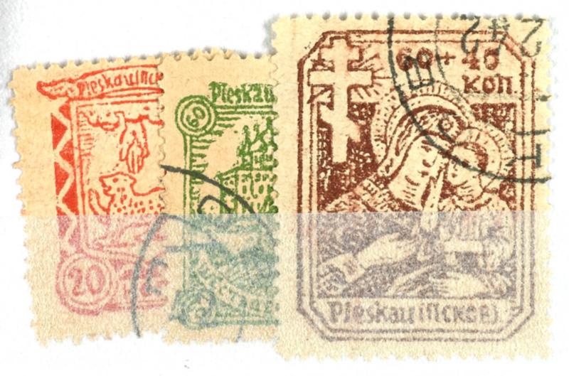 20 Kopecks and 40 Kopecks municipal coat of arms and Cathedral as well 60 Kopecks city kindergarten. all 3 stamps neat cancelled. photo expertize Brunel VP "the condition is perfect". Michel 106.- (10/12y) (page)