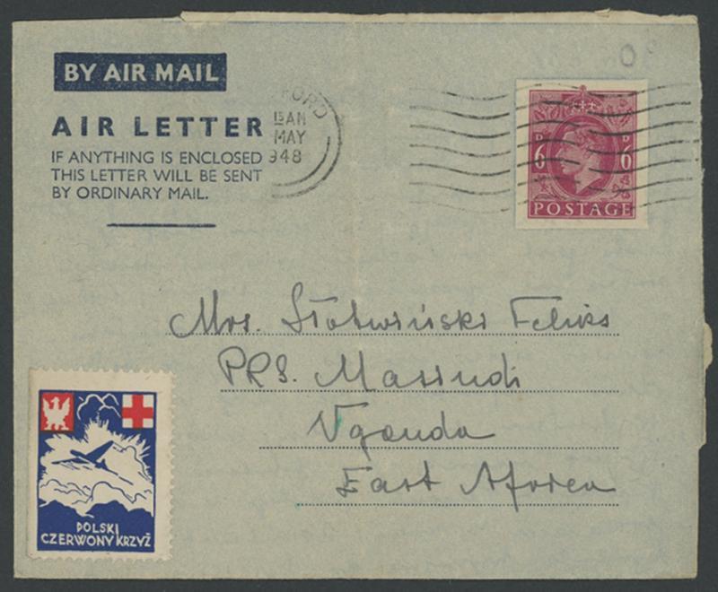 COVERS: WWII covers with patriotic labels including Mackay (Qld) Patriotic Funds 'HELP TO LICK HITLER', 'BUY BRITISH/[flag]/BUY RHODESIAN', 'HELP THE MALTA RELIEF FUND', '[bulldog]/THERE'LL ALWAYS/BE AN ENGLAND' from Jamaica, '[plane]/POLSKI/CZERWONYKRZYZ' on GB aerogramme from a Polish officer to P