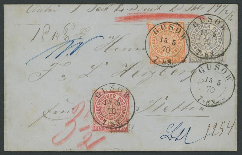 COVERS: Mostly 19th century including 1861 France-England with oval 'HOTEL/DE LA GRANDE BRETAGNE/...' cachet in on the flap & Empire Imperf 20c pair, Canada 1874 to Ohio with Small Queens 6c brown pair tied by target cancel of 'HESPELER/UC', 1870 Prussia-Holstein with Three Colour franking tied by '