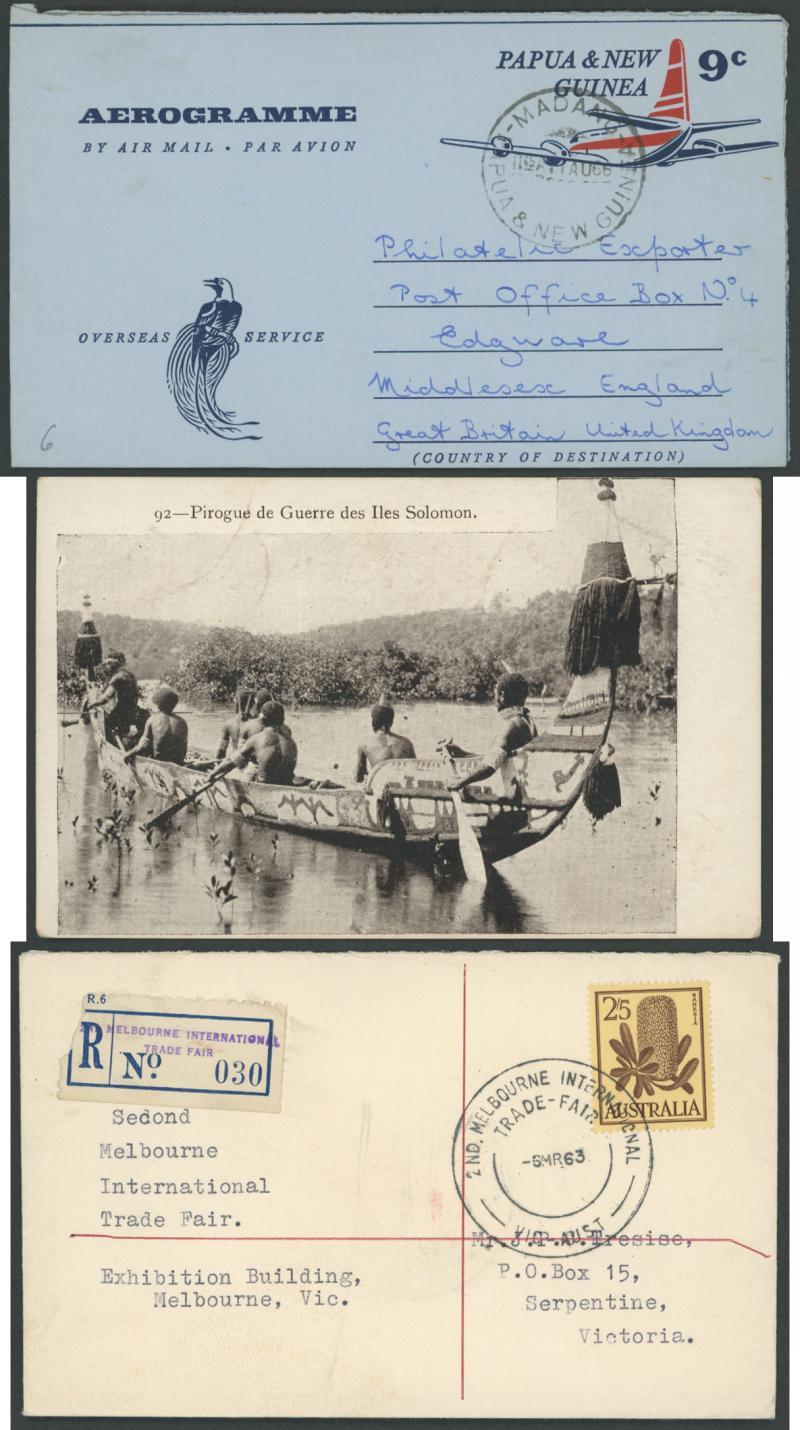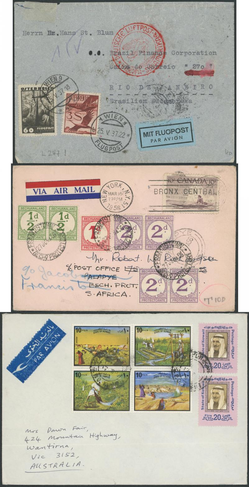COVERS: Mostly modern philatelic items with high thematic content throughout, hundreds of flight covers with strength in little-known 1980s-1990s Australian flights many signed by the pilots, lots of duplication. Would suit ebay traders or thematicists. Weighs 12kg.