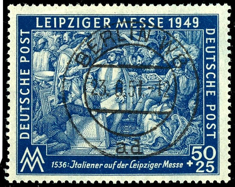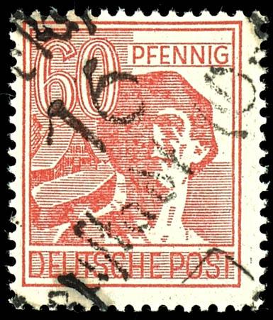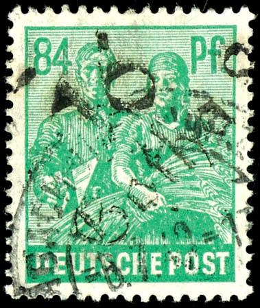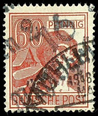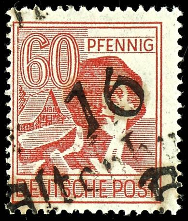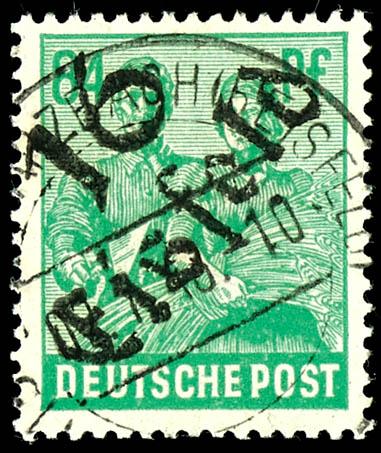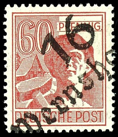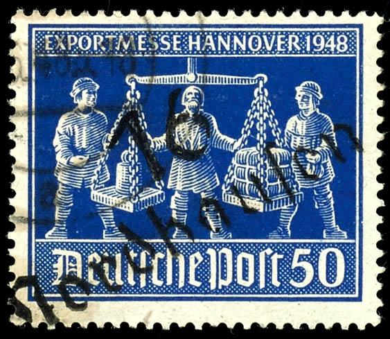 50 pfennigs Hanover fair with overprint 16 Nordhausen 1, used, rare and undervalued, perfect, expertized from Heintze BPP, Michel 120.- plus plus plus (IVbIII) 50 Pfennig Hannovermesse mit Aufdruck 16 Nordhausen 1, gestempelt, selten und unterbewertet, einwandfrei, geprüft v. Heintze BPP, Mi. 120