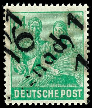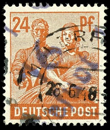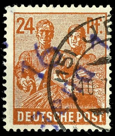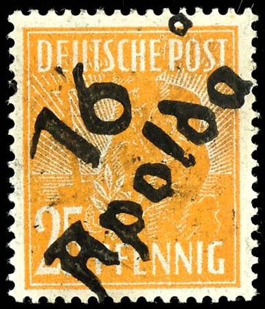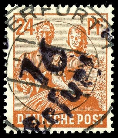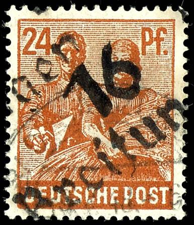 24 pfennigs with violet overprint 16 Erford 1, used, perfect, study group group 8, expertized Wagner BPP, Michel / study group 90.- (174III) 24 Pfennig mit violettem Aufdruck 16 Erfurt 1, gestempelt, einwandfrei, Arge Gruppe 8, geprüft Wagner BPP, Mi./Arge 90.-