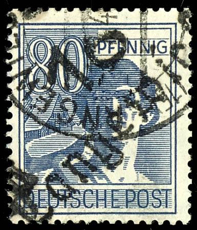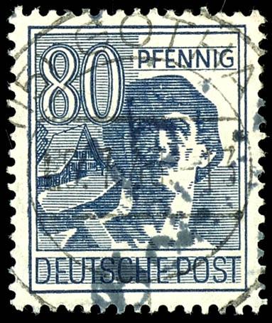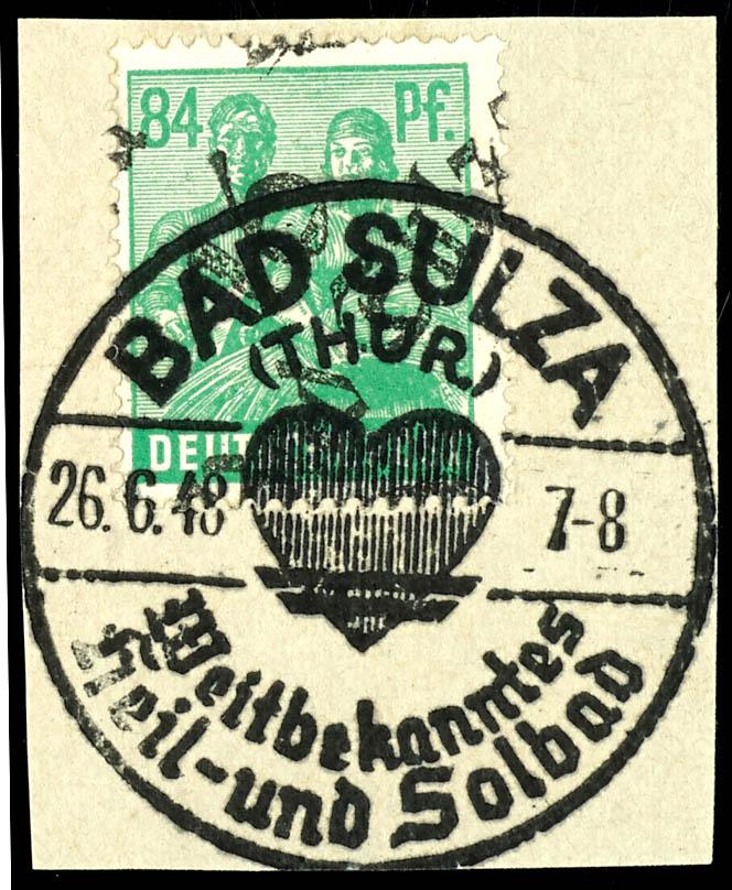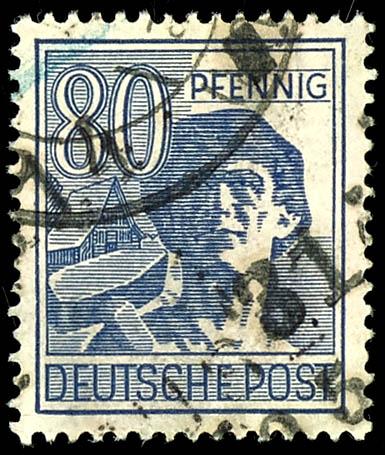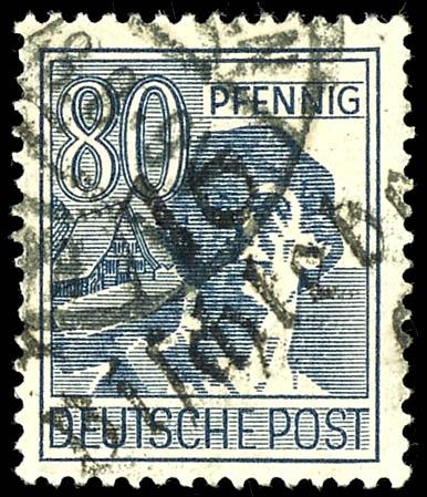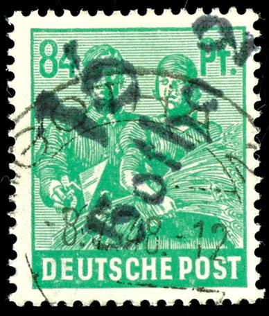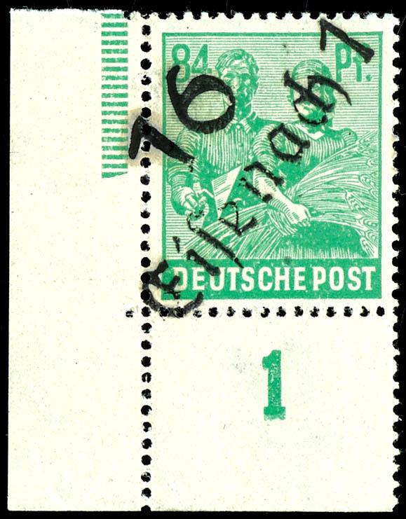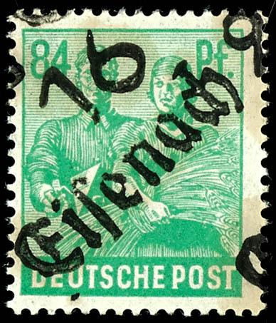 80 pfennigs with overprint 16 Bischleben a, used, perfect, a very rare stamp, study group group 13, expertized from Heintze BPP, Michel / study group 760.- (180III) 80 Pfennig mit Aufdruck 16 Bischleben a, gestempelt, einwandfrei, eine sehr seltene Marke, Arge Gruppe 13, geprüft v. Heintze BPP, M