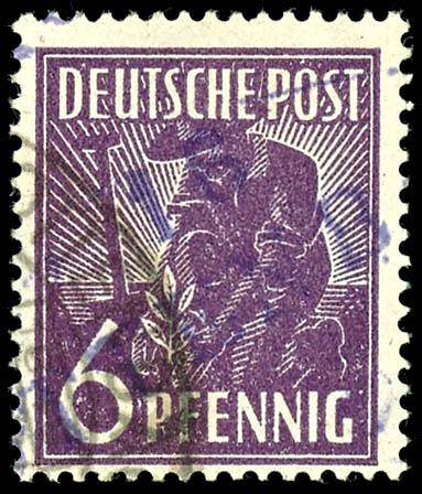 6 pfennigs worker series with machines overprint "Soviet occupying zone", blackish bluish violet, mint never hinged, very fine, unsigned, photo expertize Dr. Karsten Ruscher BPP "the quality is perfect. ", Michel 1.200.- (183e) (page)