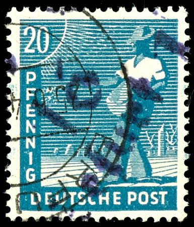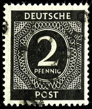 2 pfennigs worker black gray brown, left upper corner of the sheet in the plate printing, perforations going through margins, stamp small gum defect, photo expertize Siegfried Paul BPP, Michel 250.- (182bPORdgz) (page)