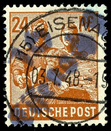 24 pfennigs with violet overprint 16 Jena 1, type b 2, used, perfect, study group group 11, expertized Wagner BPP, Michel / study group 315.- (174III) 24 Pfennig mit violettem Aufdruck 16 Jena 1, Type b 2, gestempelt, einwandfrei, Arge Gruppe 11, geprüft Wagner BPP, Mi./Arge 315.-
