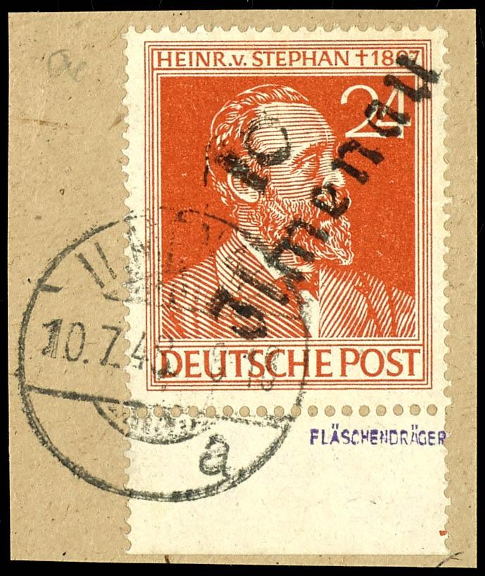 24 pfennigs with violet overprint 16 Erford 1 in type e, used, perfect, study group group 8, expertized Petzold BPP, Michel / study group 90.- (174III) 24 Pfennig mit violettem Aufdruck 16 Erfurt 1 in Type e, gestempelt, einwandfrei, Arge Gruppe 8, geprüft Petzold BPP, Mi./Arge 90.-