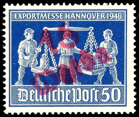 50 pfennigs Hanover fair with red overprint 16 Weida, mint never hinged, perfect, scarce denomination value, expertized Dr. Boeheim BPP (IVbIII) 50 Pfennig Hannovermesse mit rotem Aufdruck 16 Weida, postfrisch, einwandfrei, seltene Wertstufe, geprüft Dr. Böheim BPP
