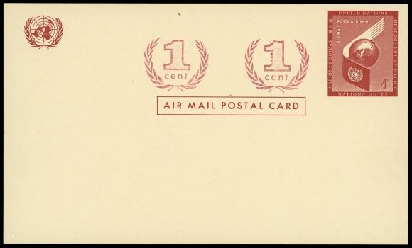 UNITED NATIONS POSTAL STATIONERY - A lovely collection in five deluxe binders, excellent coverage from early to recent issues of New York, Geneva & Vienna, mint or used with First Day Cancels with postal envelopes, postal cards, aerograms, etc. Noted scarce New York UC2 1954 10c with narrow white b
