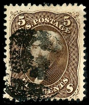 5¢ Washington used, the scarce black brown shade, couple rough perfs, F-VF