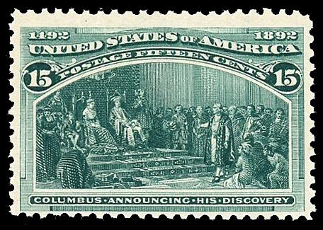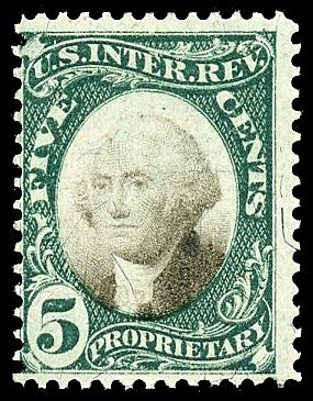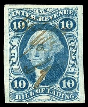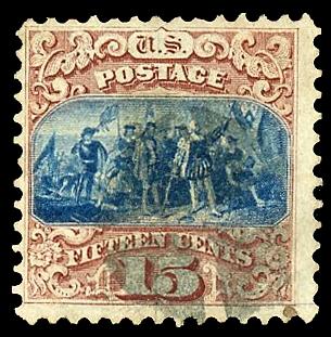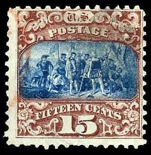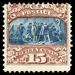 15¢ Brown and Blue type II, a scarce unused single, Scott $2600