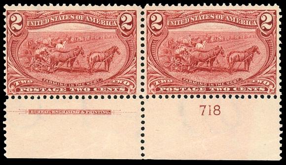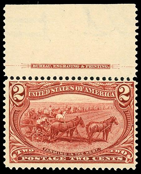 1¢, 2¢ Trans-Mississippi plate imprint singles, lower and upper margin respectively, F-VF NH