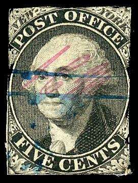 5¢ Black used, signed 'A.C.M.' in red, VG