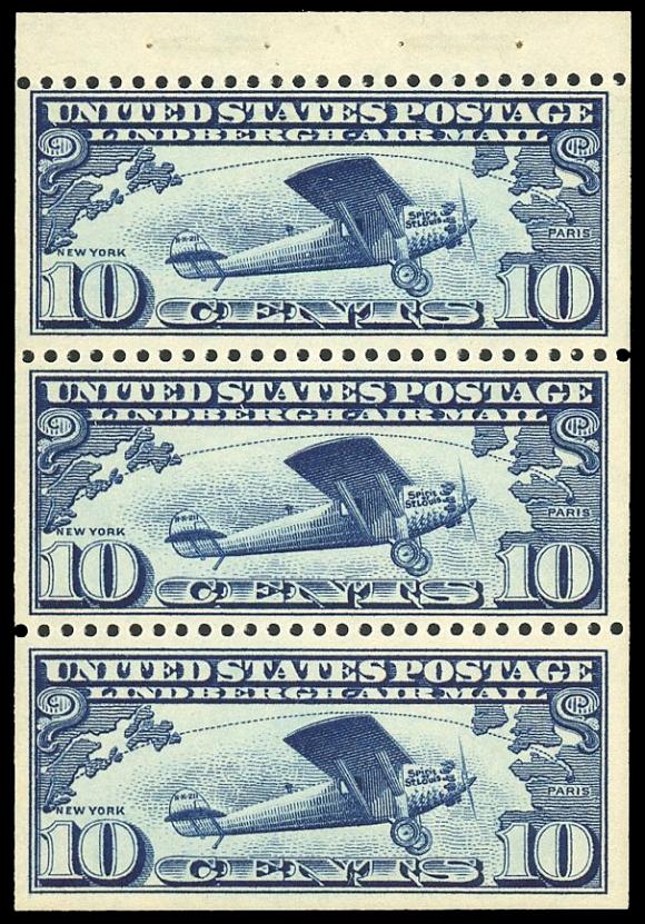 10¢ Dark Blue booklet pane of 3 mint, VF NH