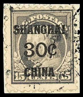 30¢ on 15¢ Gray used single on small piece, F-VF