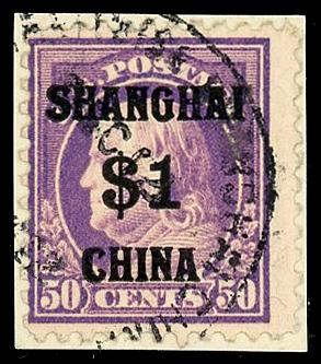 $1 on 50¢ Light Violet, a scarce used single on small piece,